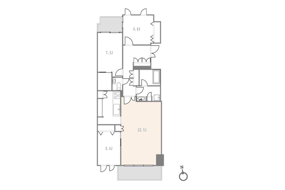 ゆとりを感じさせる約22.5帖の広々としたLDK